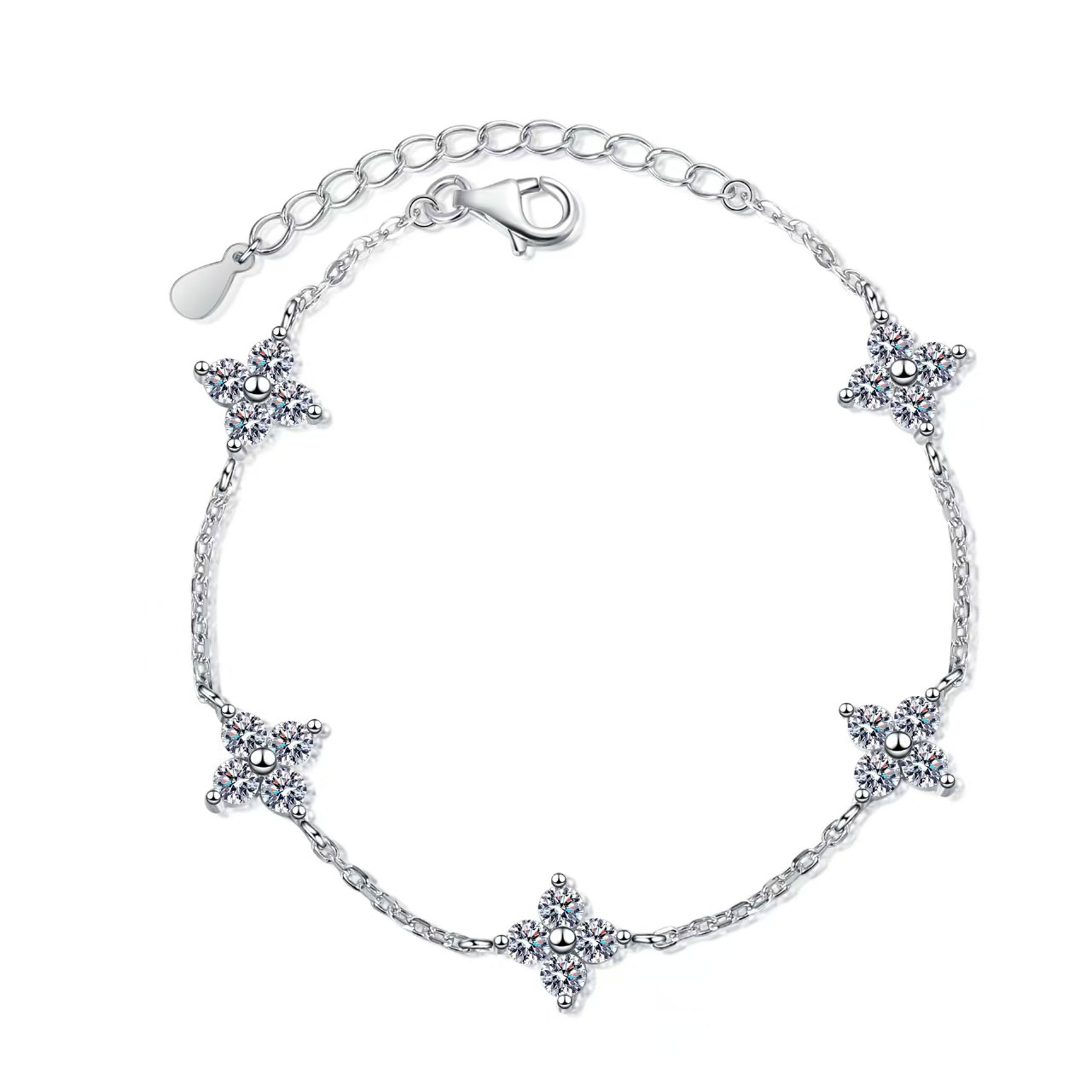 Adorn your wrist with the Stella Nova bracelet. This delicate chain features sparkling starburst charms, each meticulously crafted with dazzling cubic zirconia. Let its celestial sparkle brighten your day and add a touch of elegance to any ensemble.
